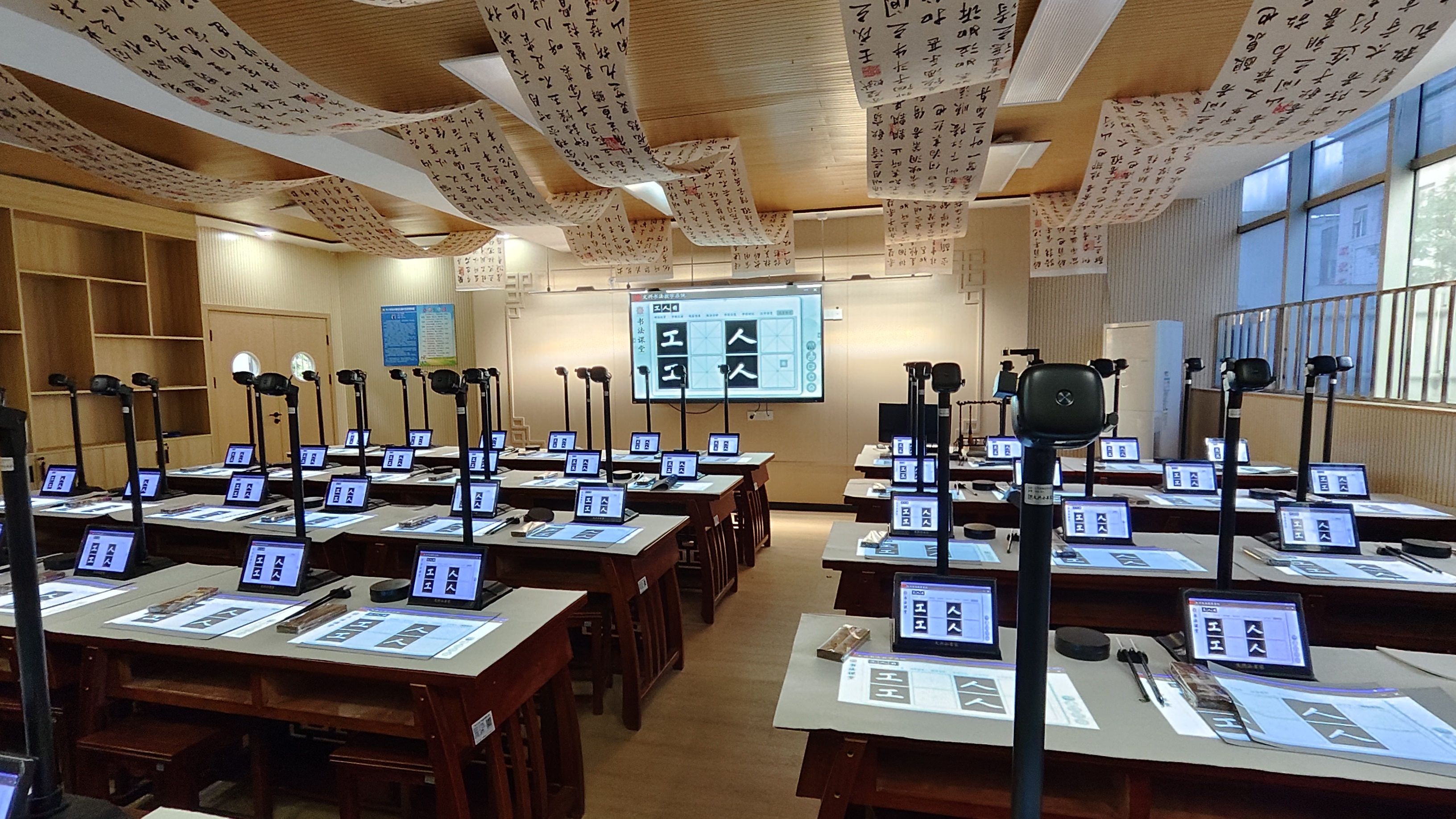 在智能笔迹分析方面,系统通过高清画质采集与多点触控技术,能够精确捕捉学生的运笔轨迹与力度变化。交互式书法临摹台提供4K高清画质支持,实现单字放大与多种幅式组合,使运笔细节的观察精度得到提升。配套的四目教学展示台搭载1200万像素高清采集能力,支持多机位实时直播,解决了传统课堂示范存在的视角死角问题。